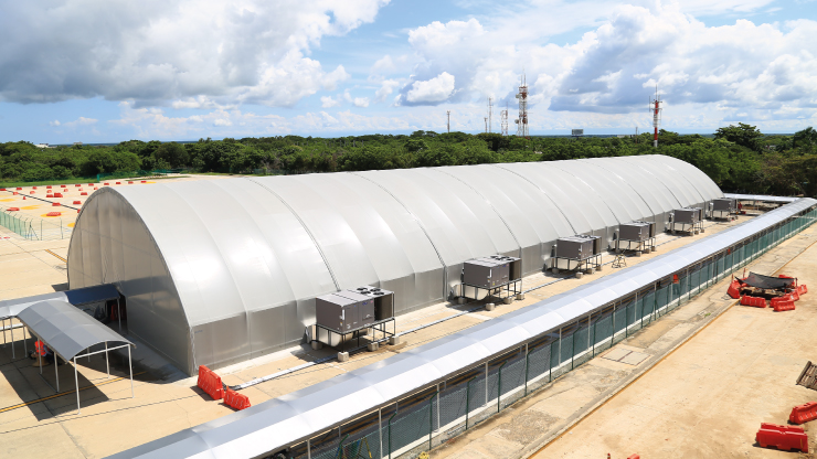 Esta zona de chequeo se construyó buscando garantizar la continuidad del servicio, cuenta con un área de 1.600 metros cuadrados y se estima que esté habilitada hasta mediados del 2018, cuando la modernización del edificio de pasajeros esté disponible.