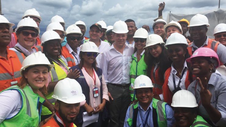 - El presidente Santos saludó a los cerca de 600 trabajadores que actualmente trabajan en las obras del aeropuerto.