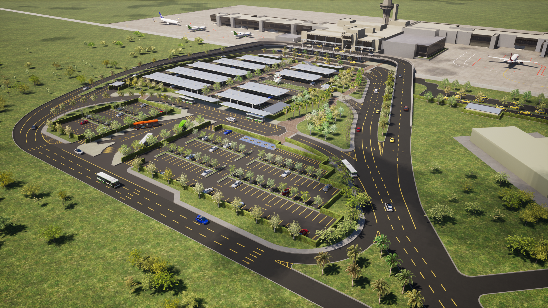 La terminal aérea, operada por el Grupo Aeroportuario del Caribe y concesionada por la Agencia Nacional de Infraestructura (ANI), pasará de tener un parqueadero, con un área de 11.000 m2, a un área de 31.000 m2, de los cuales 18.300 m2 serán destinados a estacionamiento, mientras que los espacios restantes corresponderán a zonas dedicadas al urbanismo. En total, tendrá una capacidad para 507 vehículos y 134 motocicletas. Actualmente, el aeropuerto puede albergar 340 vehículos y 50 motos.